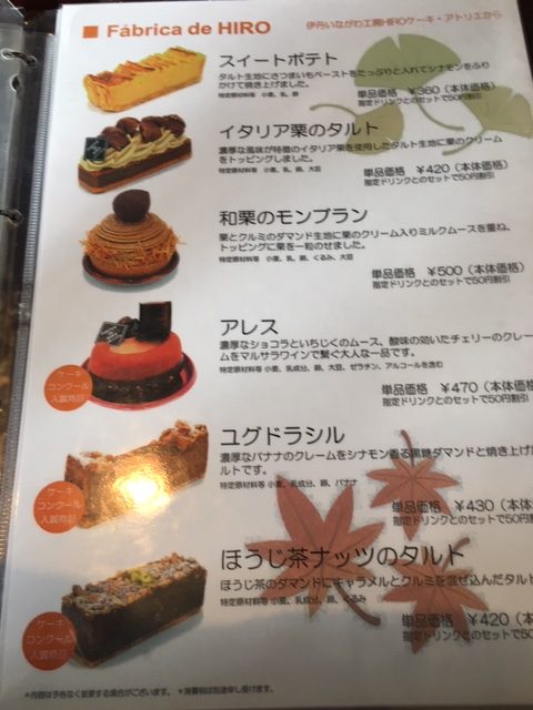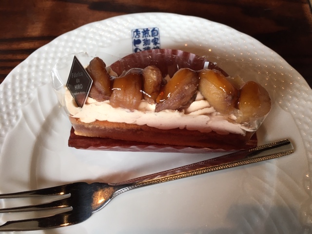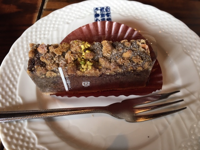 迷いに迷って、イタリア栗のタルトとほうじ茶ナッツのタルトを頼んで、ツレと半分こすることにしました。