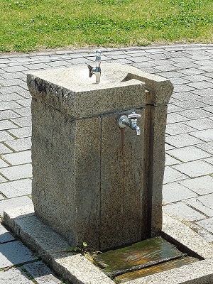 水飲み場と水道。禁止の札はかかってませんが、まさか使う人はいないでしょうね。