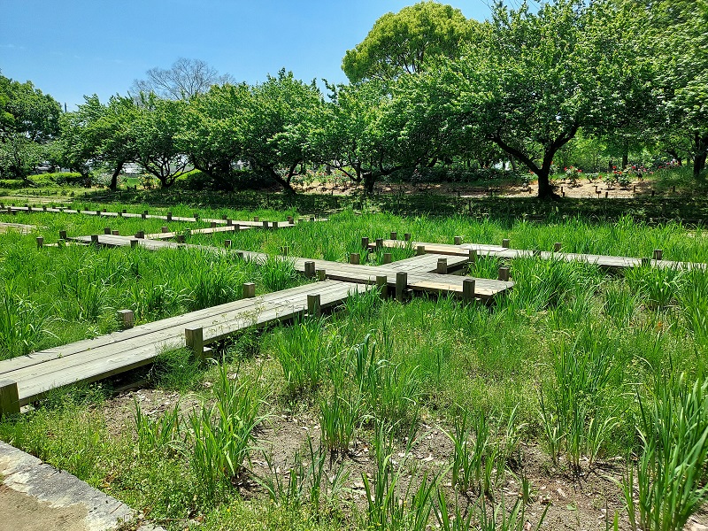 でも、見どころが芝生周りのバラだけって、ちょっと寂しいな~。しょうぶ池とか、牡丹園とか、札があるのに見つからなかった(^^;)