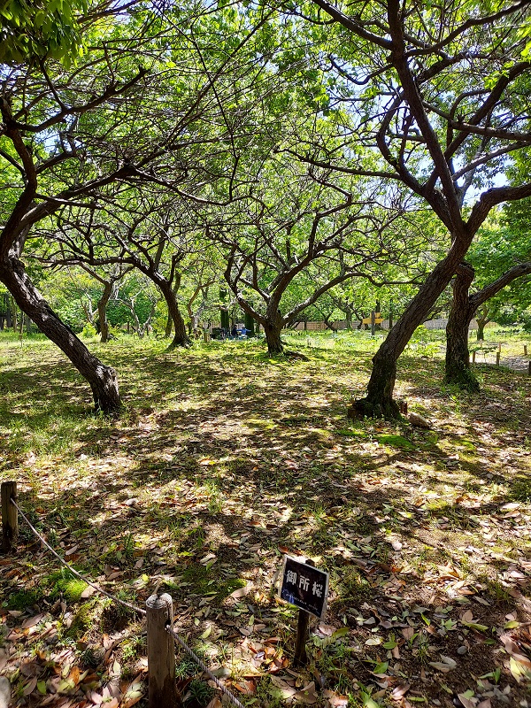 この辺りは桜の木?「御所桜」の札かあります。お花見できるのかな?