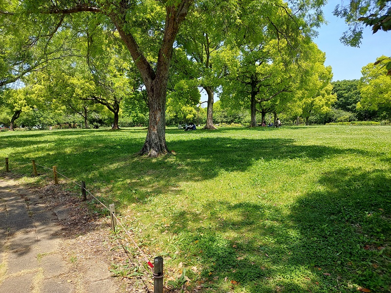 広~い芝生(^-^)中でシート広げてくつろいでいる人も。ロープ張ってるけど、入っても大丈夫?
