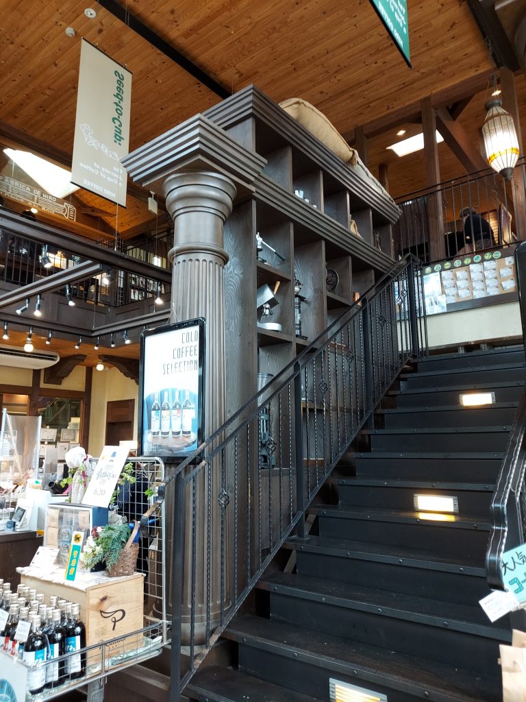 2階がカフェです。ここはテラス席もあるけど、ちょっと雨模様やからね…(^^;)やっぱり今日はやめときましょう。また落ち着いたら来ますね。