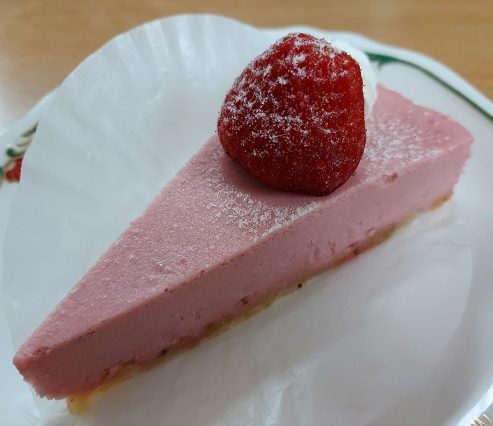 【あまおう苺のチーズケーキ】はちょっと小ぶり。あんまりチーズケーキ感はないですね。イチゴの味がしっかりしました。コーヒーによく合う感じ。