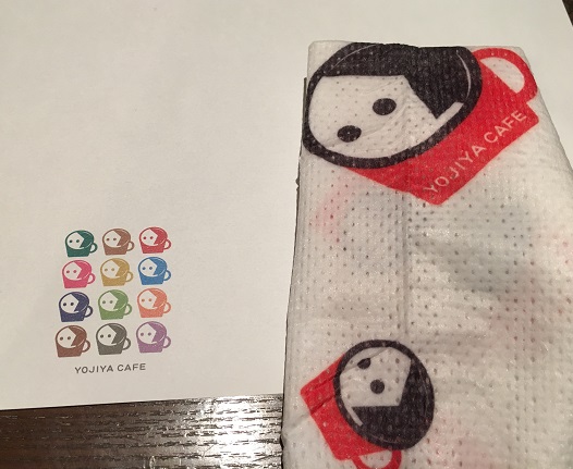 ナフキンもお手拭きも、よーじやの顔マーク。