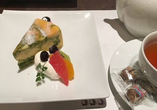ワタシは紅茶とお抹茶チーズケーキ。ベイクドチーズケーキですが、あんまりお抹茶感はなかったです。