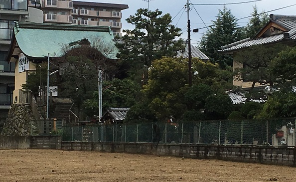 左は畑、右は児童公園。その間に参道です。