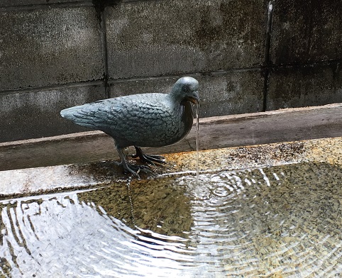 ハトの口から水。