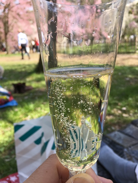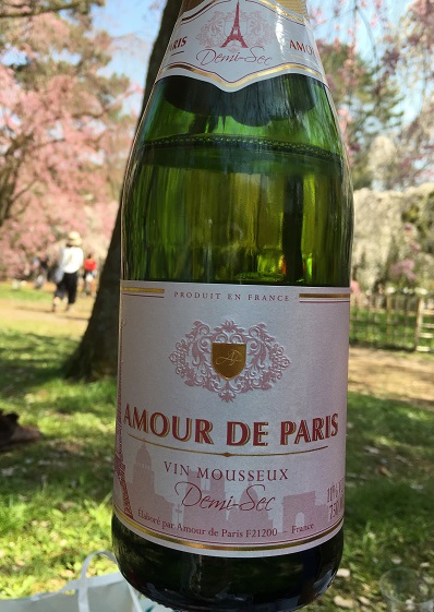 家から持参したスパークリングワイン(^.^) 安いヤツですが、ラベルが可愛くて春らしい(^.^) 保冷剤一杯いれて持ってきました。