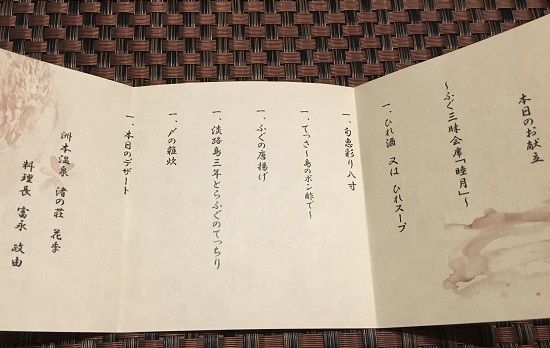ずっと以前泊った、『あわじ浜離宮』と同じようなメニューですね。そりゃ同じホテルニューアワジグループやし。ますます期待高まります。