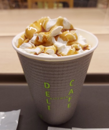 クリームてんこ盛りのミルクティー。こりゃスプ―ンいるわ。キョロキョロ探すけど、そういうの置いてるコーナーがない。お姉さんに「スプーン欲しいねんけど…」って聞いたら、お盆の上にちゃんと置いててくれてた(^^;)