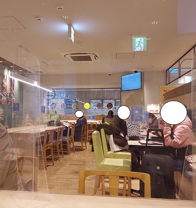 アクリル板があるから、向かい合わせでも安心。テーブルの横にはコンセントも。スマホの充電もできる!旅行帰りなんかに良いね(^-^)