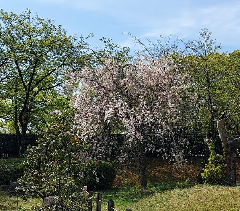 石垣の上にも桜が!盛りを過ぎてて、ちょっと残念