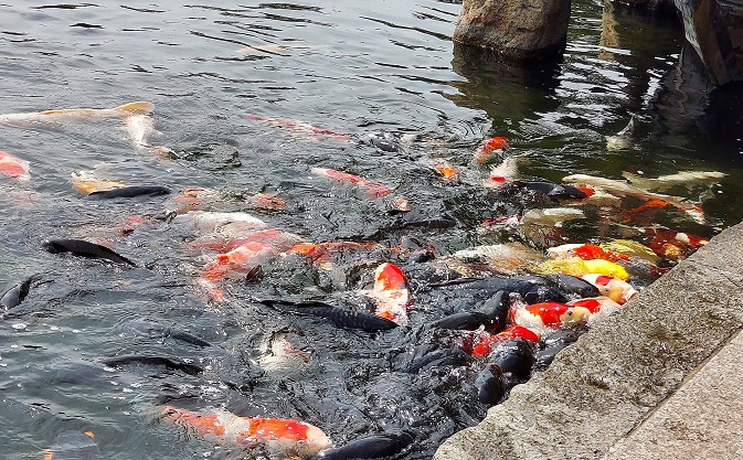鯉が……(((^^;) コロナで来る人少なくて、エサ足りないん?? ガッツクガッツク!(((^^;)