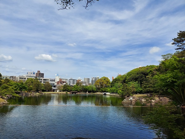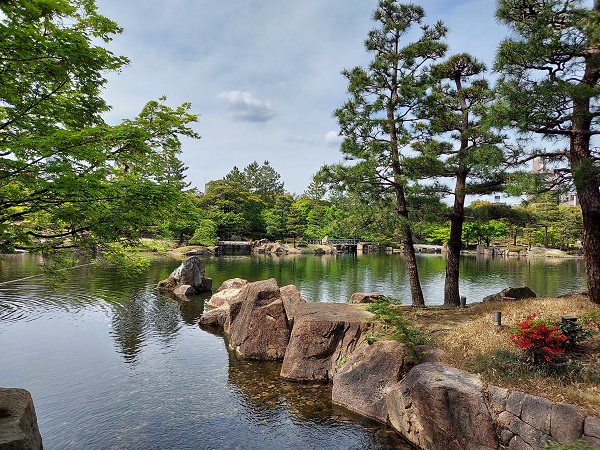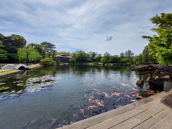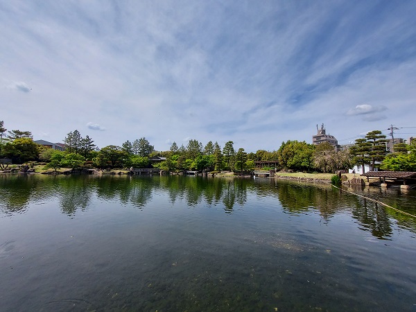 この池は、海に見立ててるらしい。だからこんなに広大なんや。