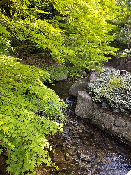 川が流れてる。紅葉のころはみごとやろね(^^)