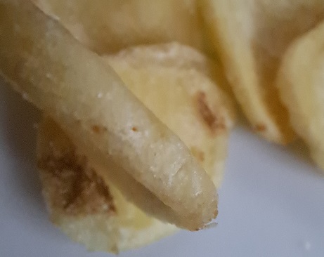 厚切りっていうことだけど、確かに普通のポテチより厚い。厚さ2~3mmくらいある。