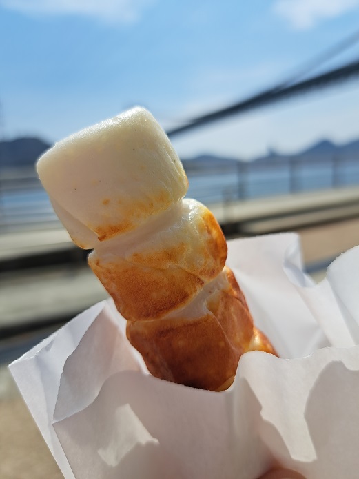 熱々を受け取って、ここで食べてもいいけど、せっかくのお天気。外で海を眺めながら(^^)