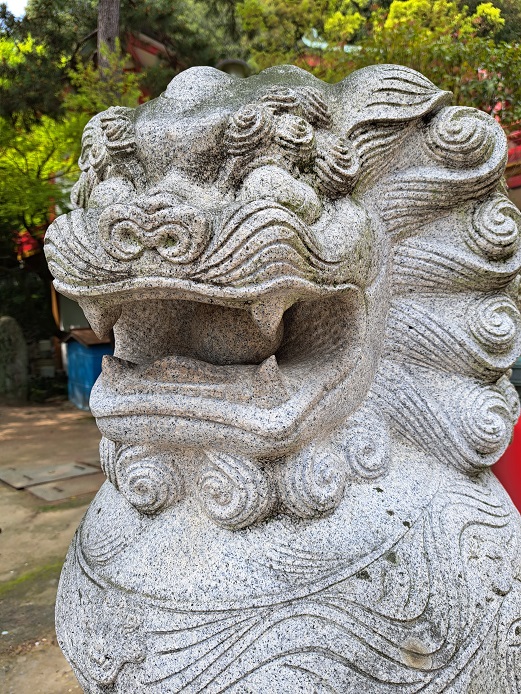 堂々の狛犬。中国大連の花崗岩を使って、現地で彫り上げたらしい。