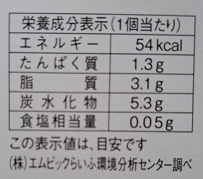 小さい一個で54kcalとはね。炭水化物もけっこうあるし(((^^;)