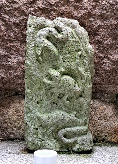 龍(蛇に見えるけど)を掘った古い石。