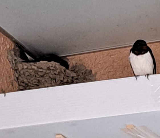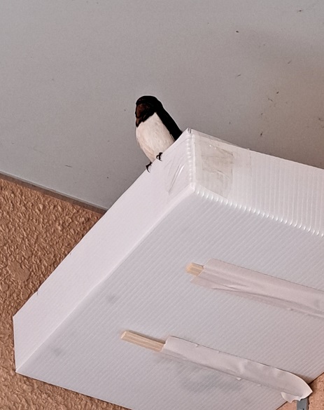 あちこちにツバメの巣が。フンが落ちてこないように、ちゃんと囲いがされてる。