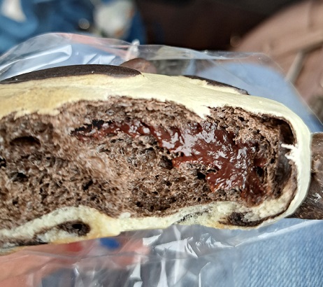 中は黒い。チョコパンや。しかも、チョコクリーム入ってる(^.^)なかなか美味い🎵