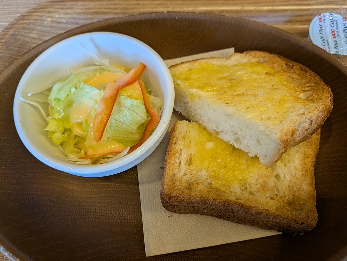 トーストは美味しい(^^)さすがパン屋さんや。サクサクいただく。