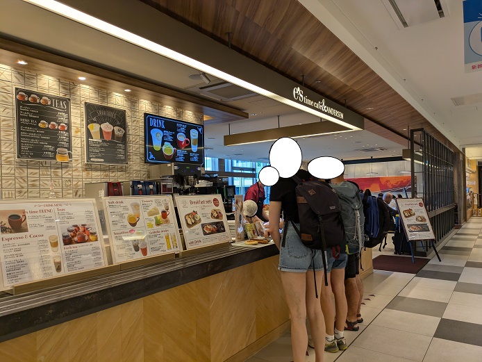 いや、ほとんどの店舗はまだ開店前だけど、入り口のパン屋さんは開いてる。