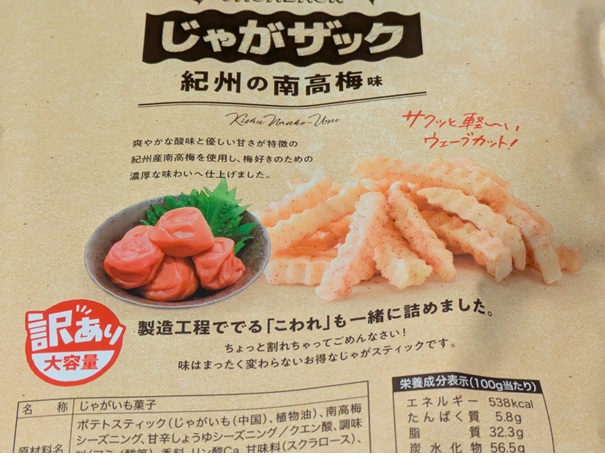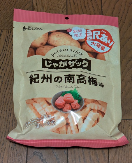 とれとれの湯の売店であれこれ買ってた時、『じゃがザック 紀州南高梅味』540円なんての見つけた。これは初めて見たなぁ。売ってたけど気づかなかっただけかもしれんけど。