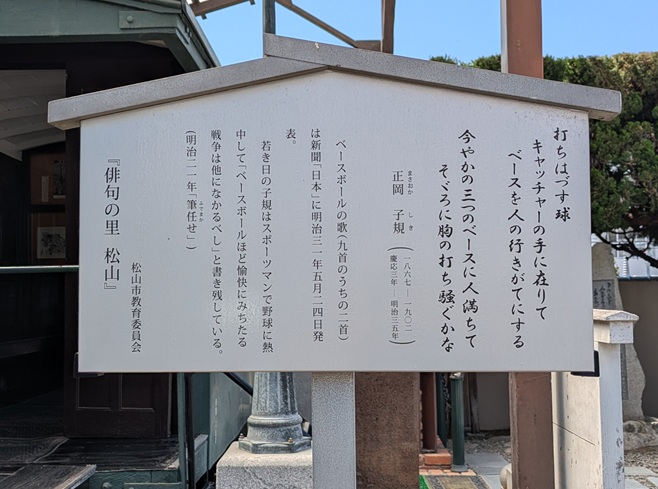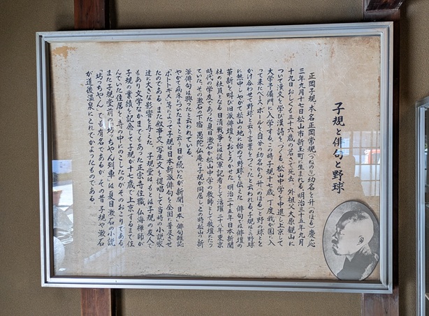 松山市駅から徒歩5分。正岡子規由来の『子規堂』は、野球ファンでもおもしろい。なんたって、野球用語を日本語に訳した張本人。野球大好きだったんだって。