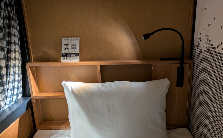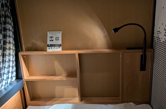 枕元にはライトと、小物を置けるスペース。
