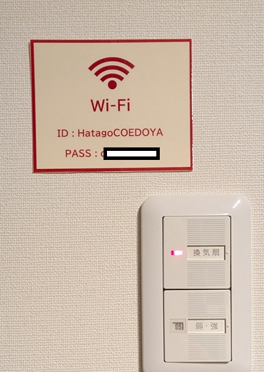 部屋入ってすぐのところに、WiFiパスワード。