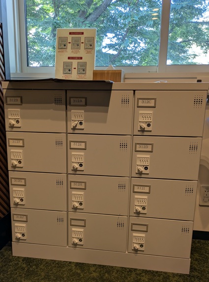 貴重品をいれる鍵付きロッカー。