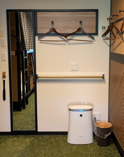 ハンガー掛けるところも何か所かあるし、姿見の鏡も。