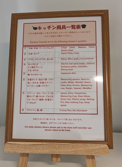 チェックインして、設備の説明してもらう。