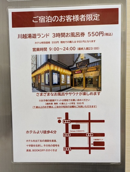 スーパー銭湯のお風呂券ももらえる。3時間550円なら、安いやん!