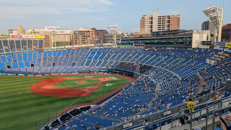初めて横浜スタジアム、ハマスタにやってきた!阪神vsDeNA戦。一般発売と同時に予約したのに、ビジター応援席は満席!なんとかレフト側のウィング席を確保。まったく、今年はどこ行っても阪神タイガース応援席が取りにくい(-_-メ)もちろん、甲子園なんか全然取れない!まぁ、甲子園が取れないから、みんな遠征するんやろけどね。