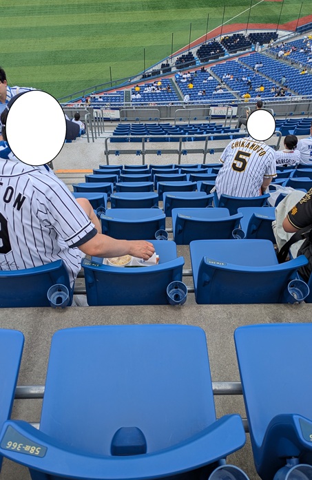 噂に聞いてたけど、このウィング席って、めちゃくちゃ上!マツダスタジアムのビジターパフォーマンス席も、かなり上まで階段登らされたけど、それ以上!