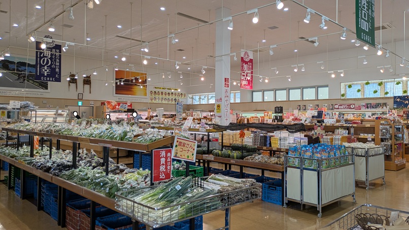 物産館の中は、スーパーマーケットみたい。この日は、海産物の入荷が少ないとか。たしかに冷蔵庫スカスカやったな(^^;)
