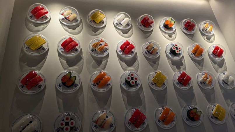 前回気が付かなかったけど、壁には寿司の皿!