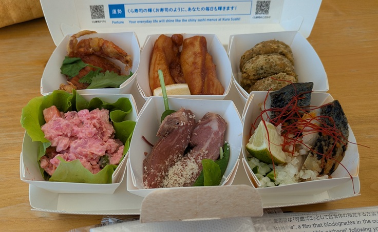 永久に予約が取れない『くら寿司 万博店』。前回テイクアウトで食べて、これもえぇやんって思った。なので、今回はもうひとつ別のメニューをテイクアウトすることにした。『世界の料理 6大陸セット』1980円。