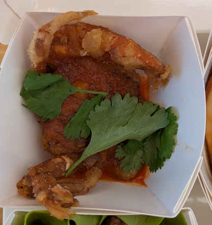 殻ごと食べれるカニ。これは美味い❣️葉っぱはパクチー?でもニオイはない。パクチー嫌いなムスメも平気だから、パクチーじゃないのかな?