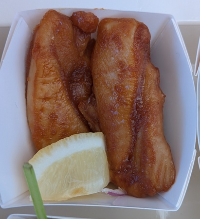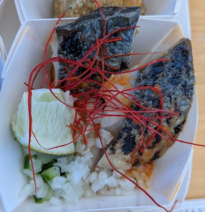 全然生臭くないから、魚苦手のムスメも「美味い」って食べてる。添えられてるライムを絞るんやろけど、小さすぎて絞れない(^^;)でも、クセのない味付けで美味かった。ライム絞ったらもっと美味いやろね