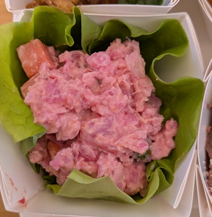 【エンザラダデフ】はパナマ共和国の料理。赤い色はビーツらしい。
