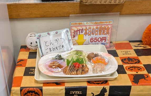 その中で、【おすすめ本日の日替わり定食】650円は、とんかつごま味噌ダレ。やっぱりこれやね。