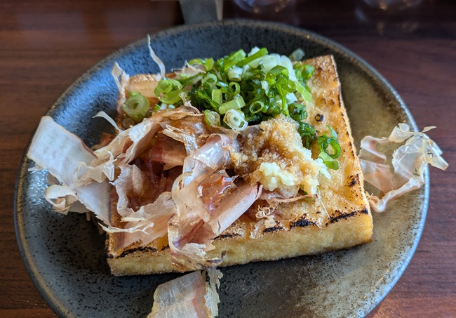 厚揚げも温めてくれて、ネギ、生姜、かつお節をのせて出てきた。けっこうデカい(^^;)