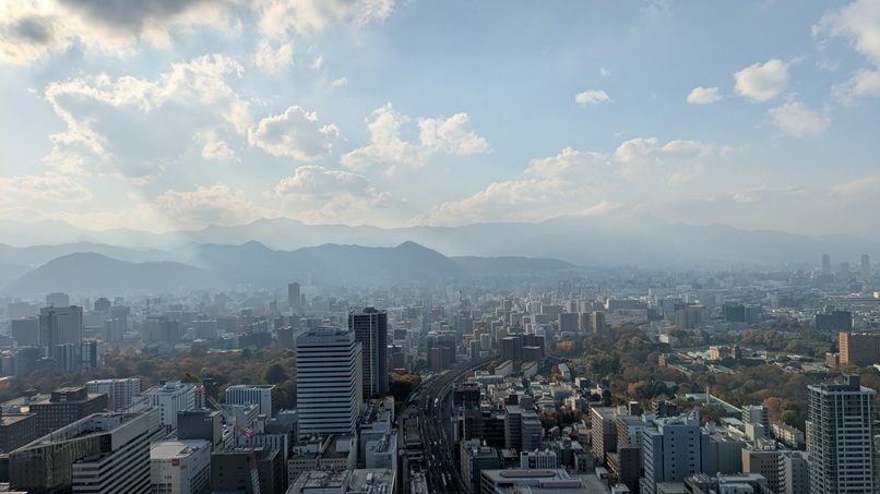 東側の景色。こうしてみたら、札幌って盆地みたいやね。