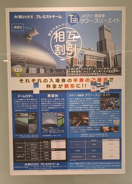ここの半券で、プレミストドームのツアーや展望台が割り引きになるらしい。