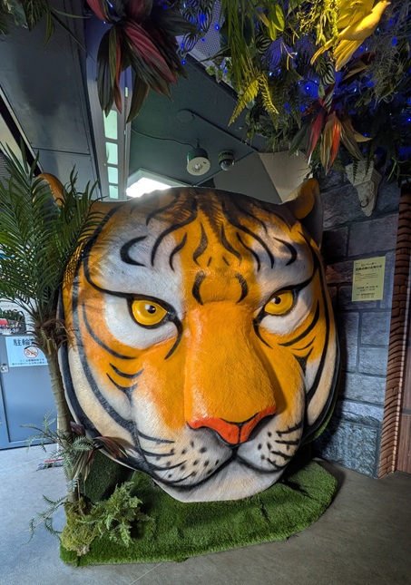 エレベーターで5階まで上がるわけやけど、エレベーター横にはでっかい虎の顔。