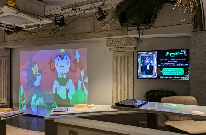 エレベーター降りたら、ここもユニバっぽい!すでに入場始まってて、順番に受け付けしてる。上着をハンガーにかけて、例の無料招待券を出す。